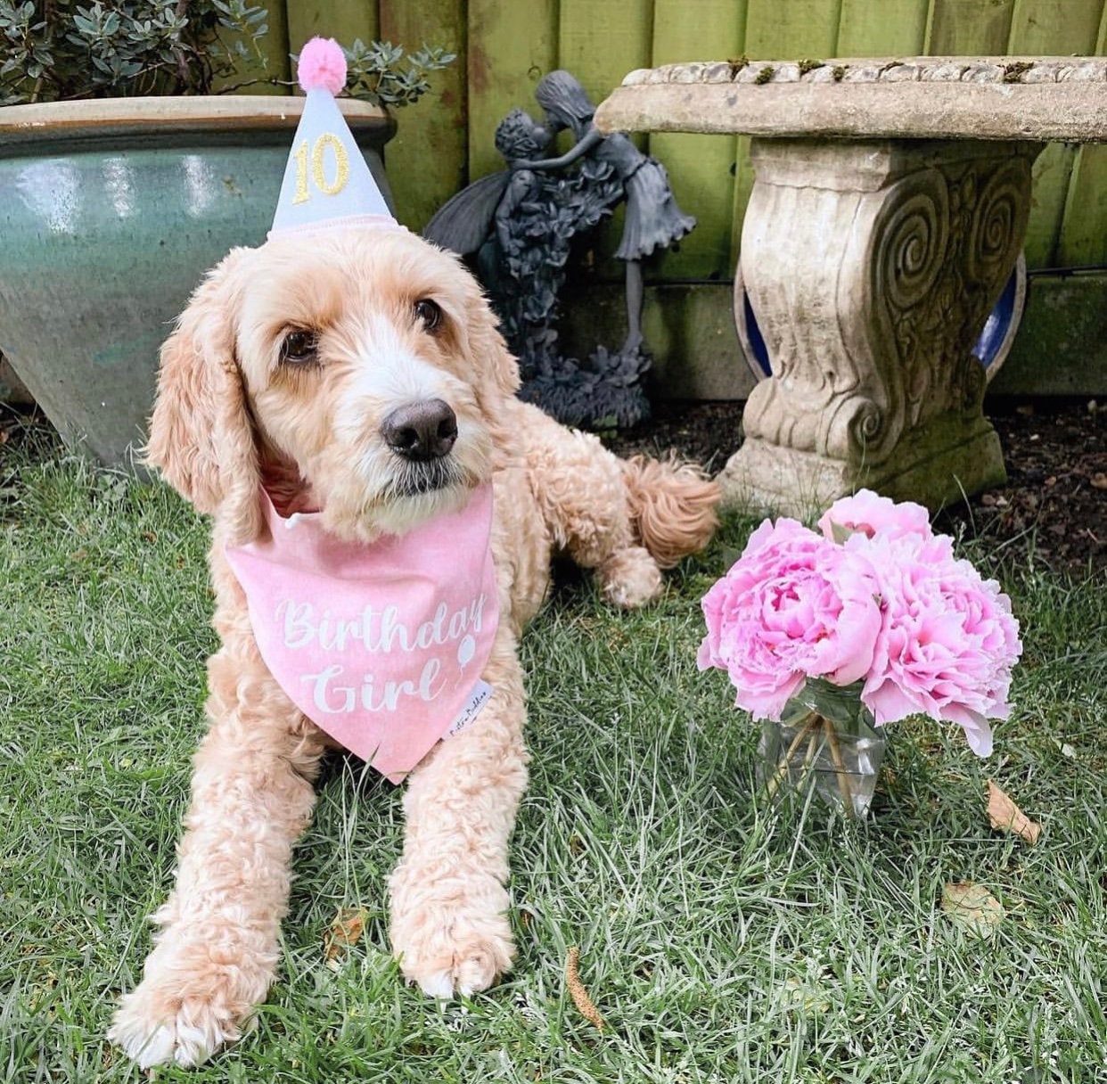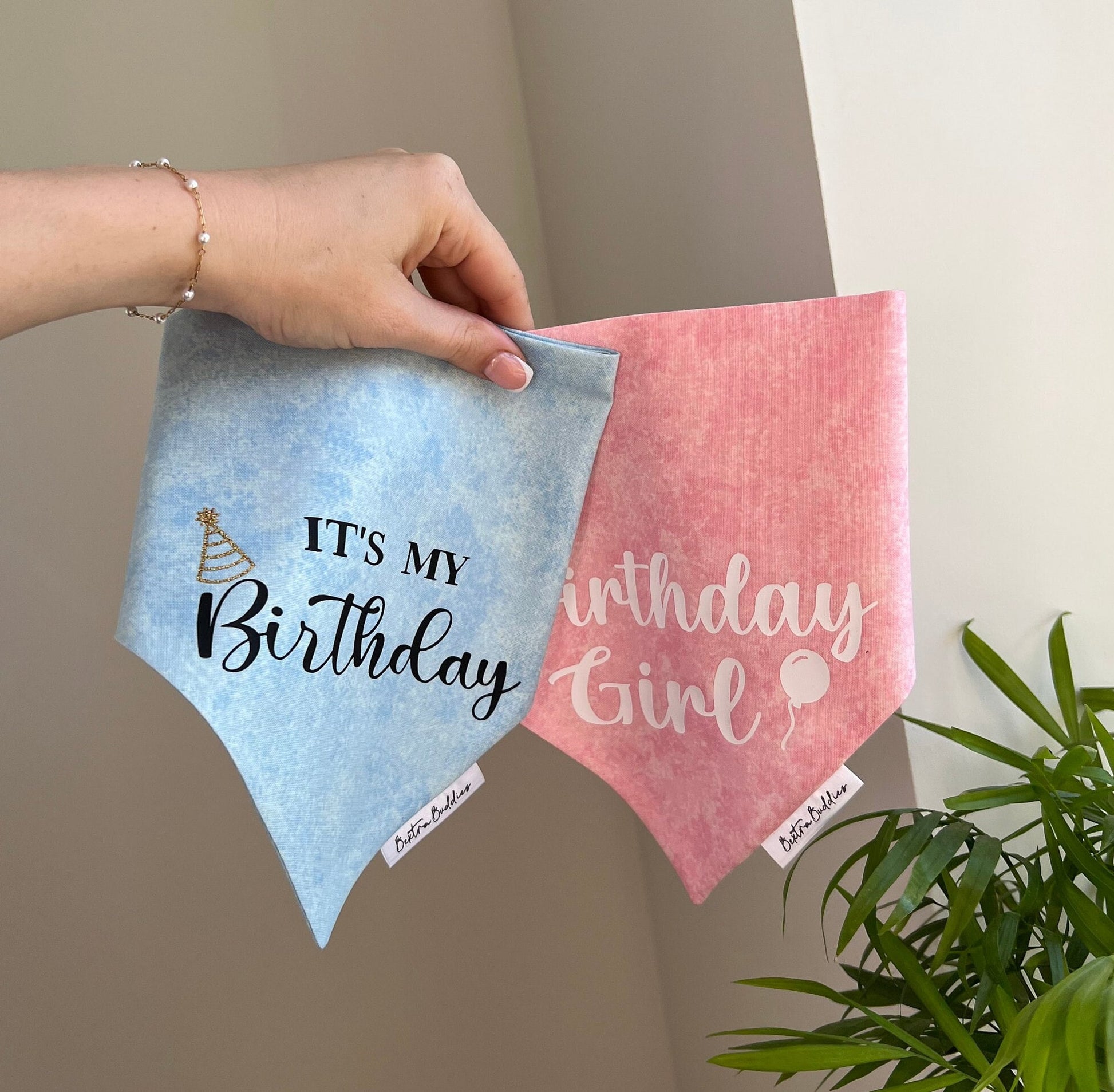Celebrate the Birthday Girl! Each bandana is handmade so design placement can vary on each bandana.