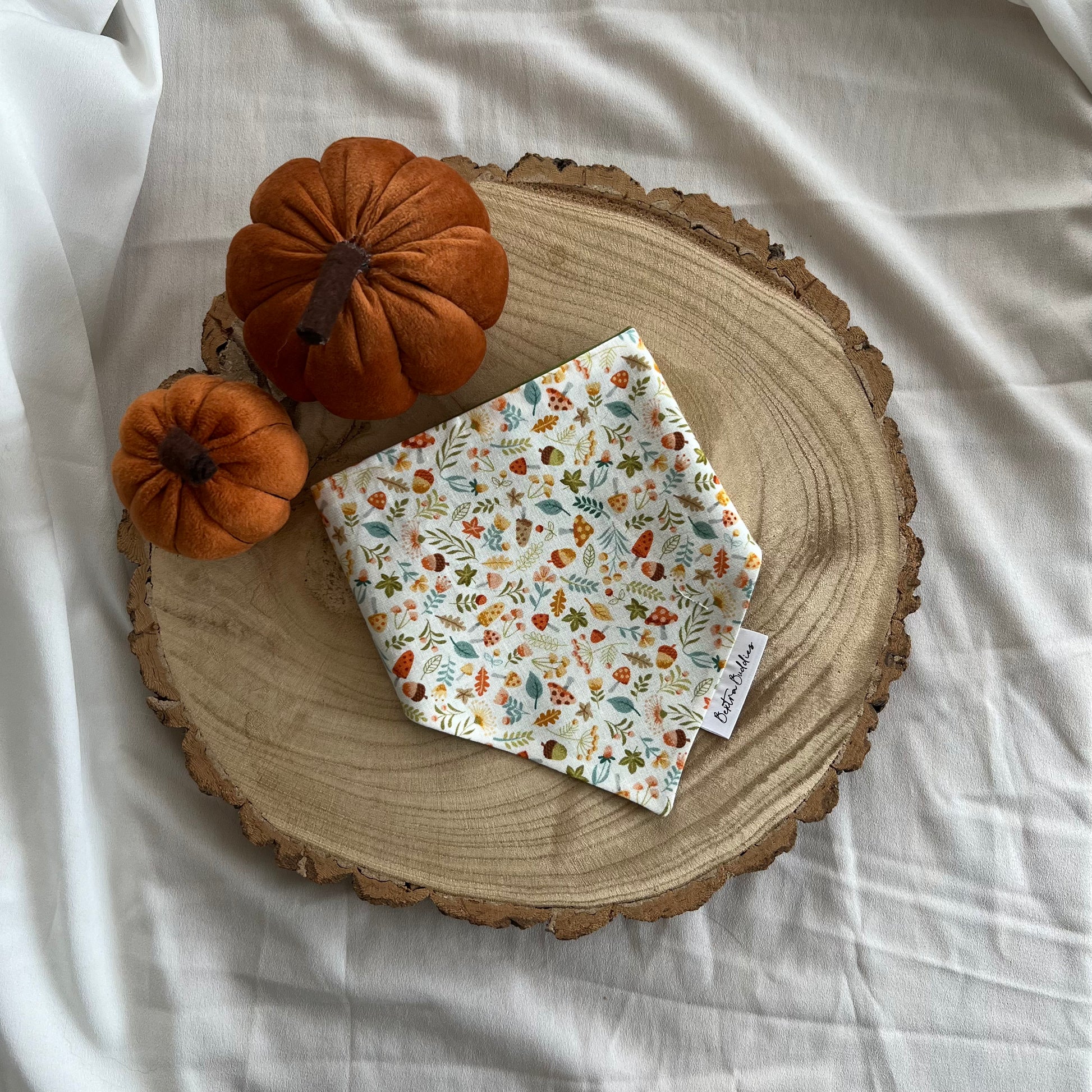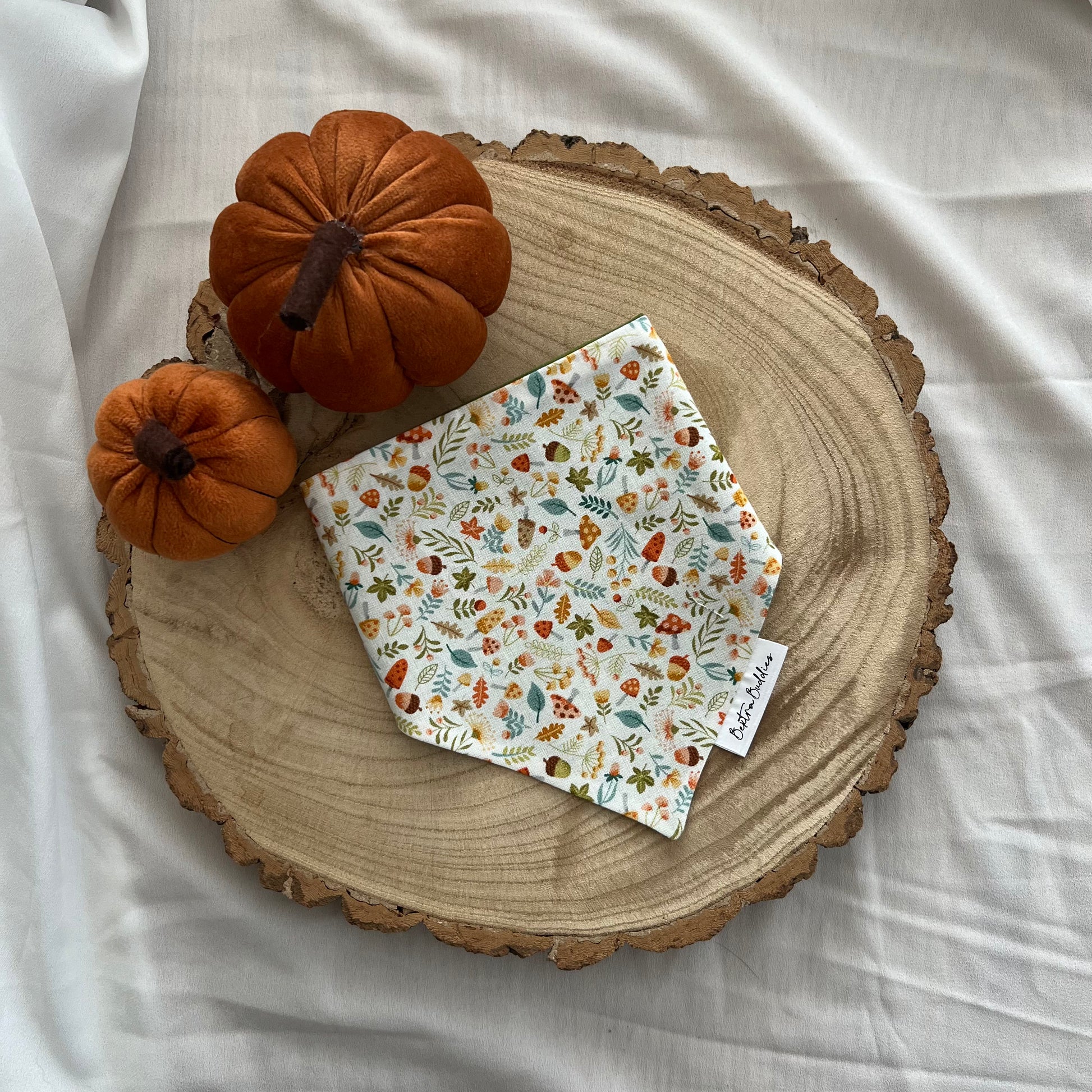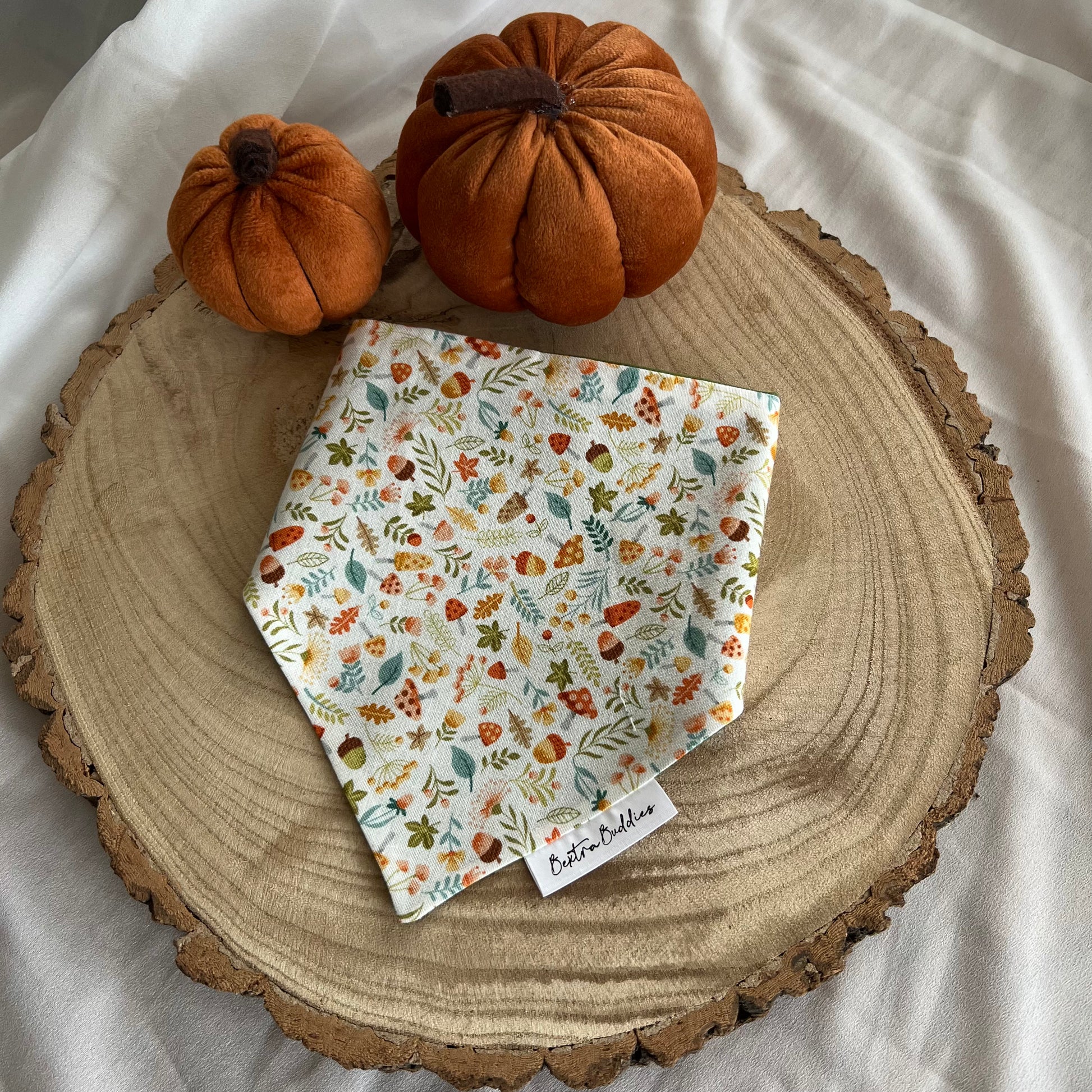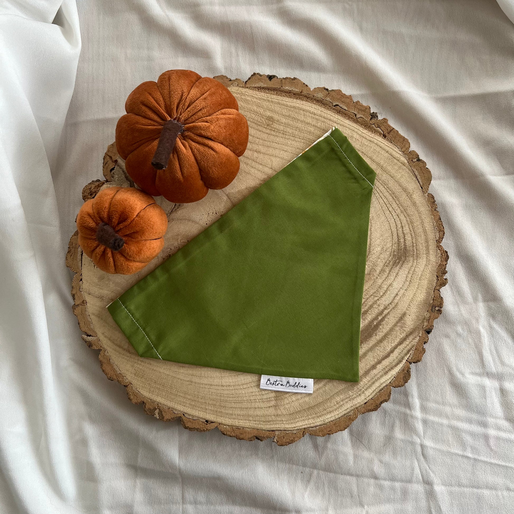 Bextra Buddies bandanas are sure to make your pup look spooktacular for the occasion. Plain green on the back. Due to lighting and differences in monitors, colours may vary slightly from what appears online. Each bandana is handmade so design placement can vary on each bandana.