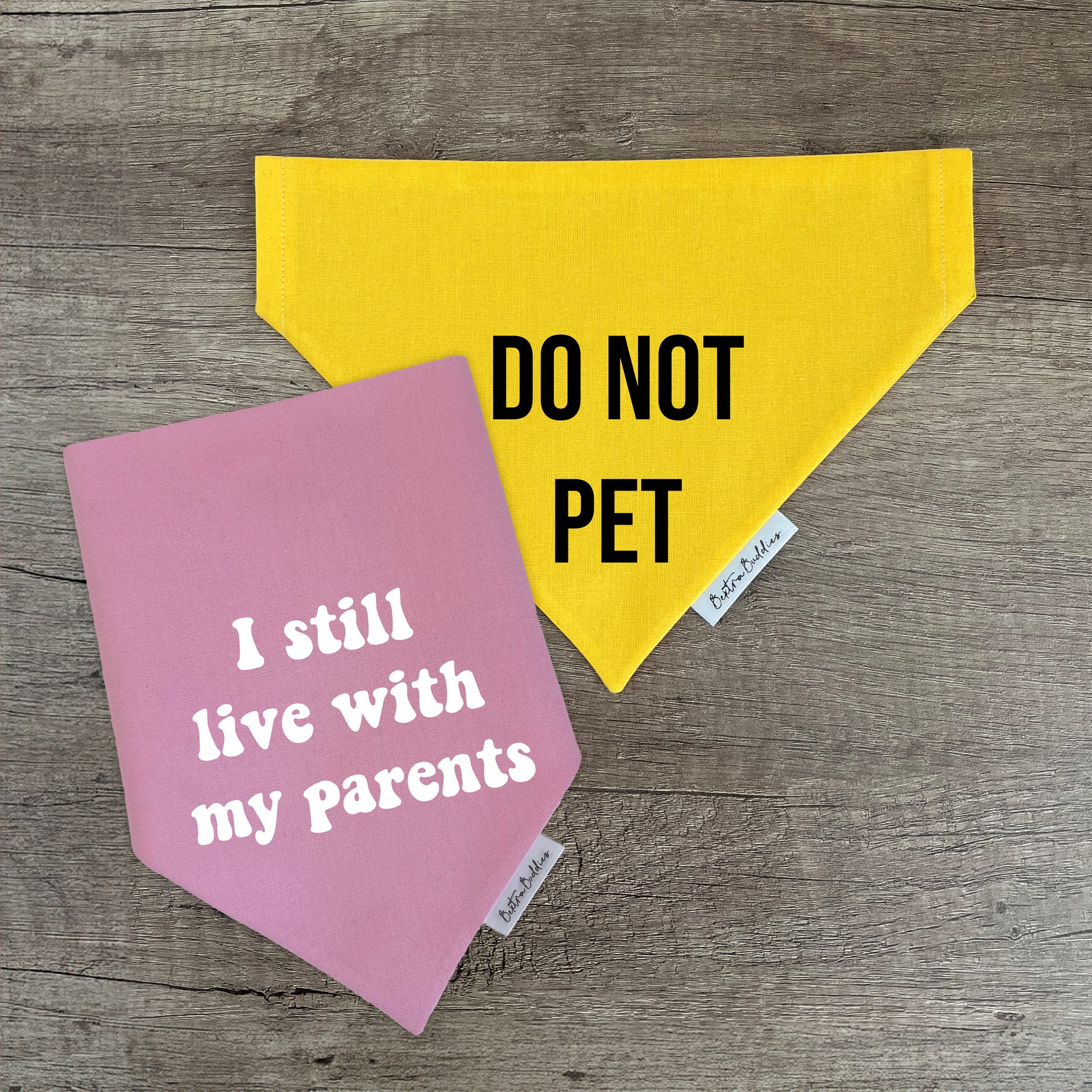 Over the collar bandanas can be worn by slipping your dog's collar through the opening between the back and front of the bandana, then clipping the collar around your pup's neck. These require a collar and cannot be tied around your dog's neck.