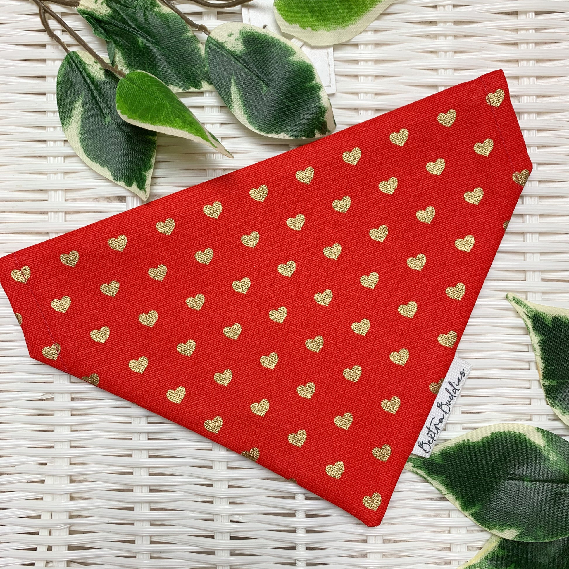 OVER THE COLLAR - Simply feed your dog's collar through the top of the bandana and secure it. The measurement does NOT need to measure around their entire neck. Aim for a couple of inches less than their collar length or smaller.