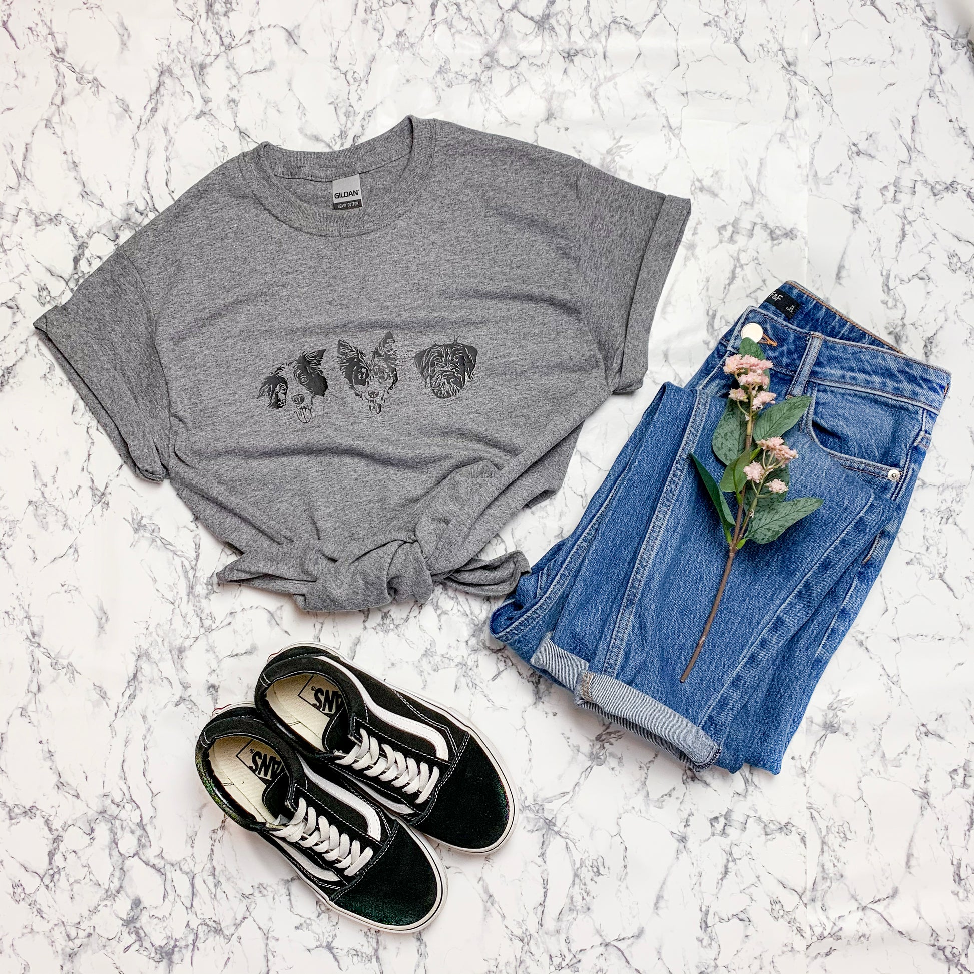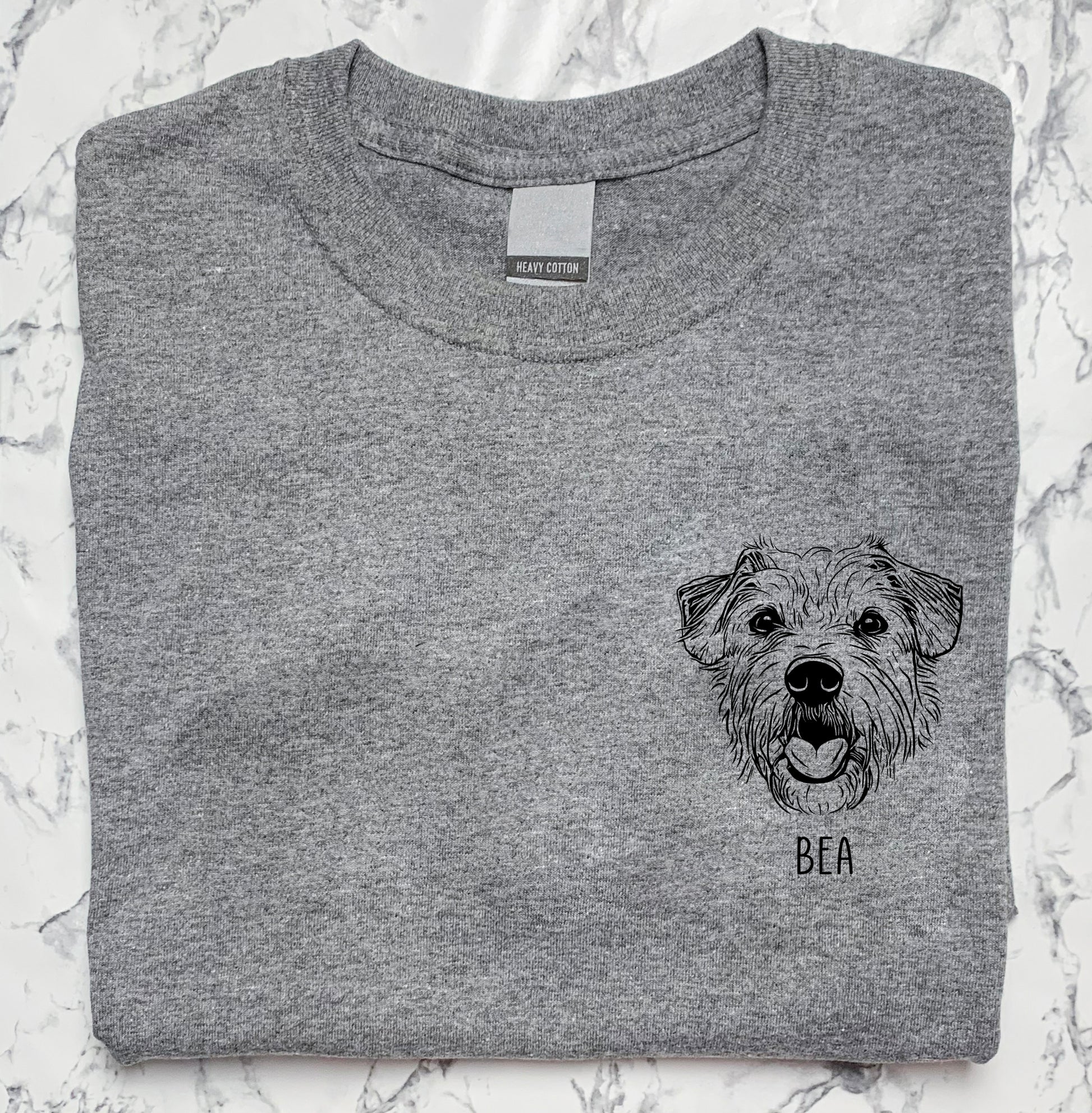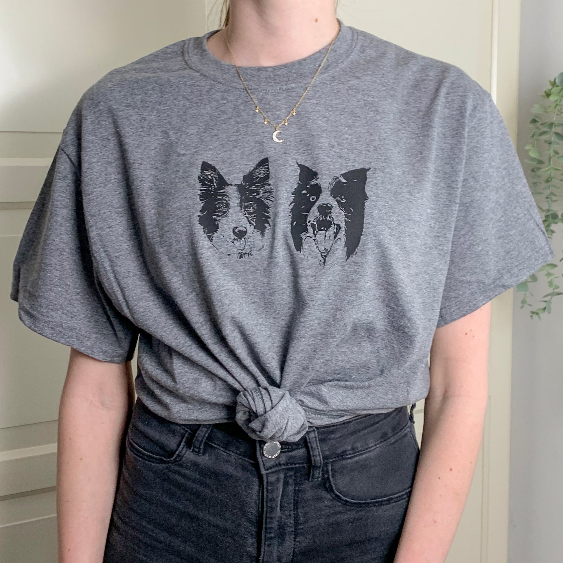 Send us a photo of your pet and we will create a unique sketch of them to personalise this t-shirt.