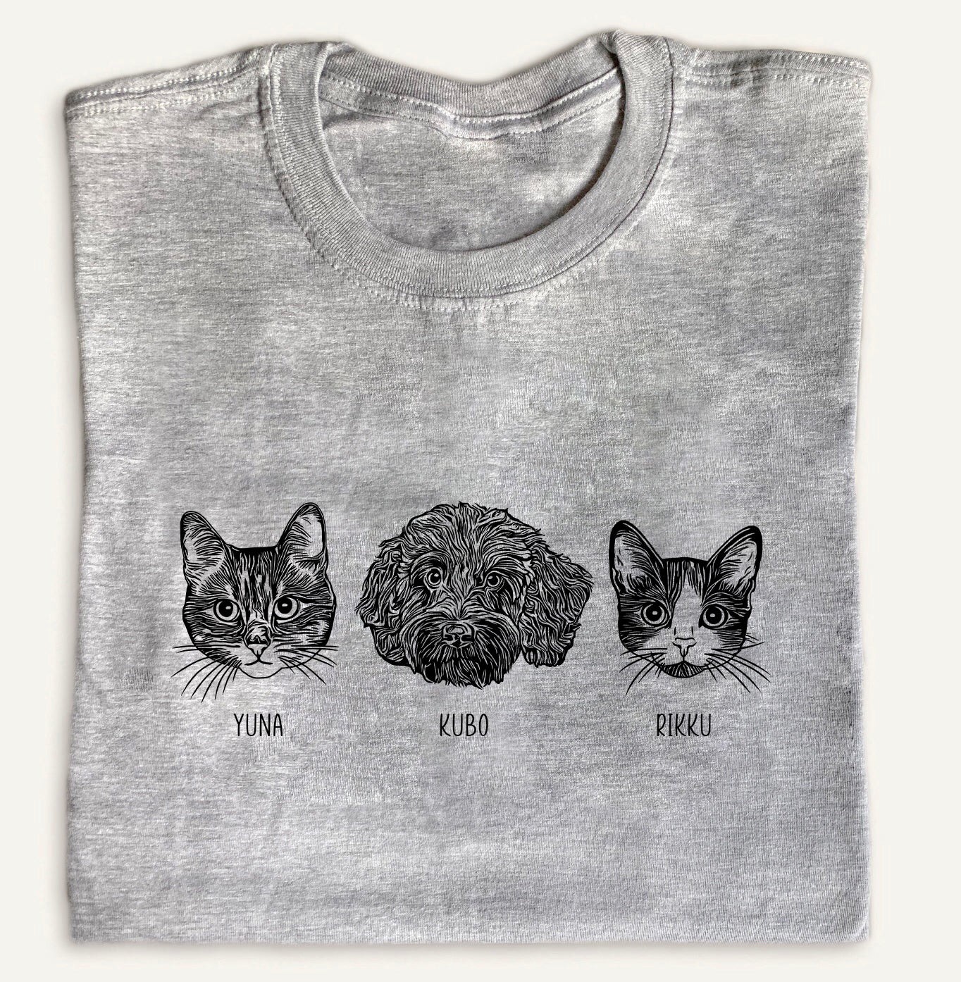 Light Grey Custom Pet Portrait T-Shirt