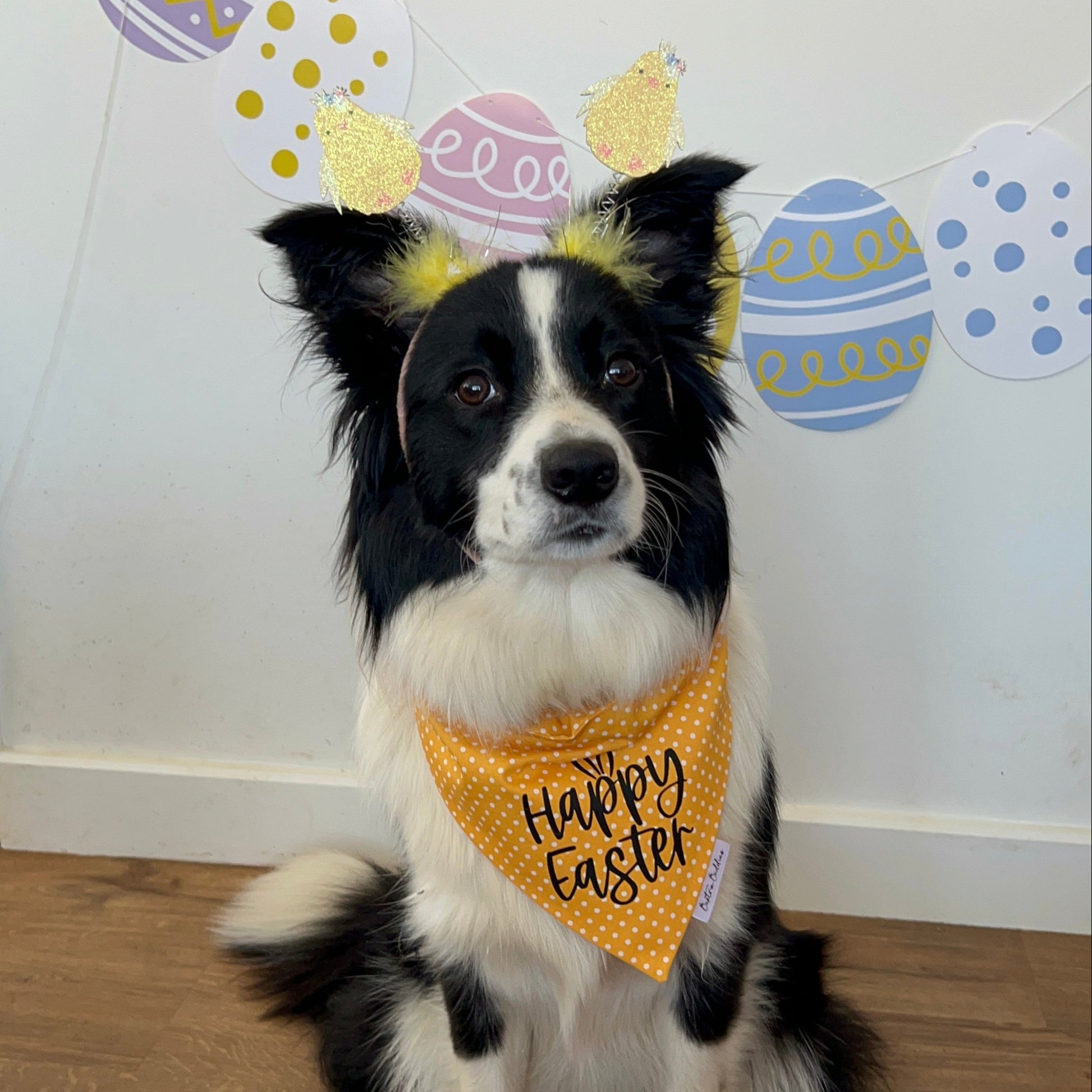 Adorable Easter bandanas, designed to bring a festive flair to your furry friend's wardrobe, this bandana is perfect for your Easter celebrations, springtime strolls, or simply enjoying the season’s vibrant energy.