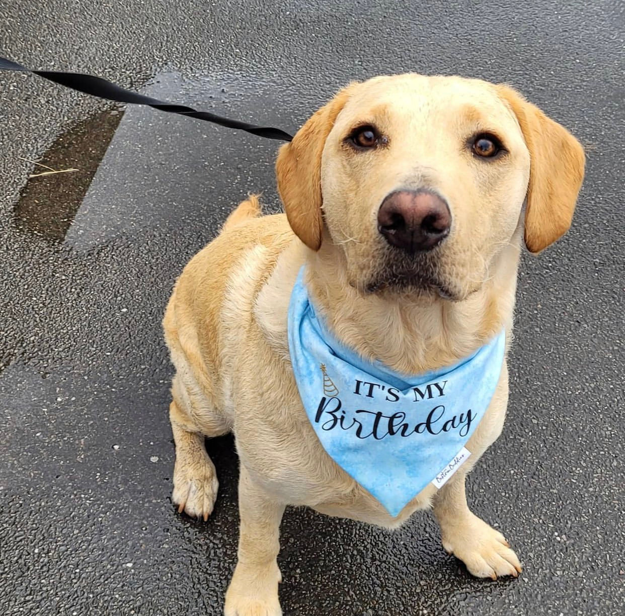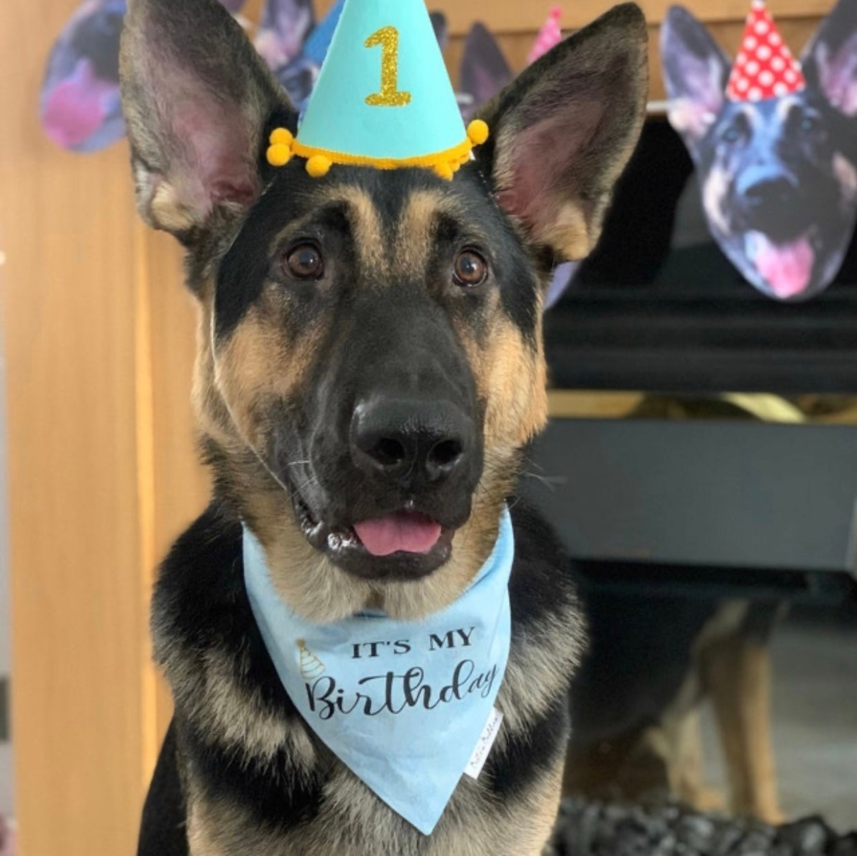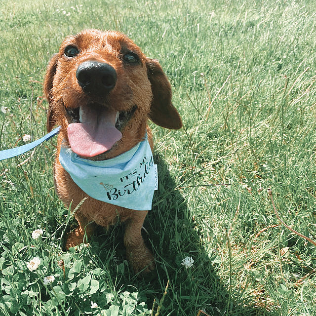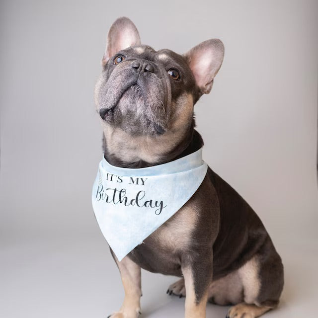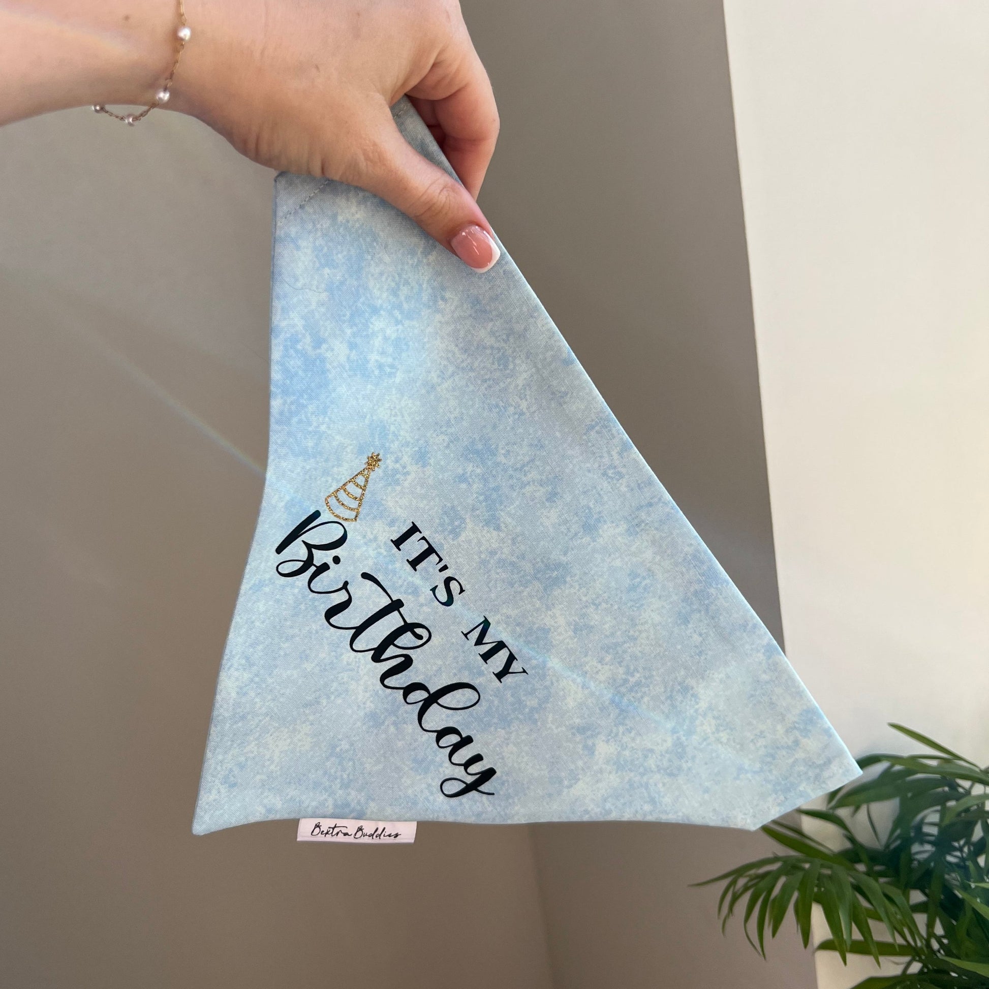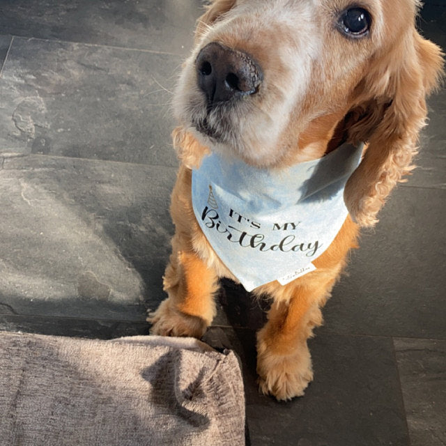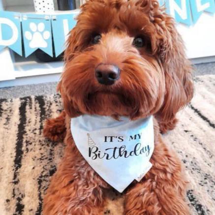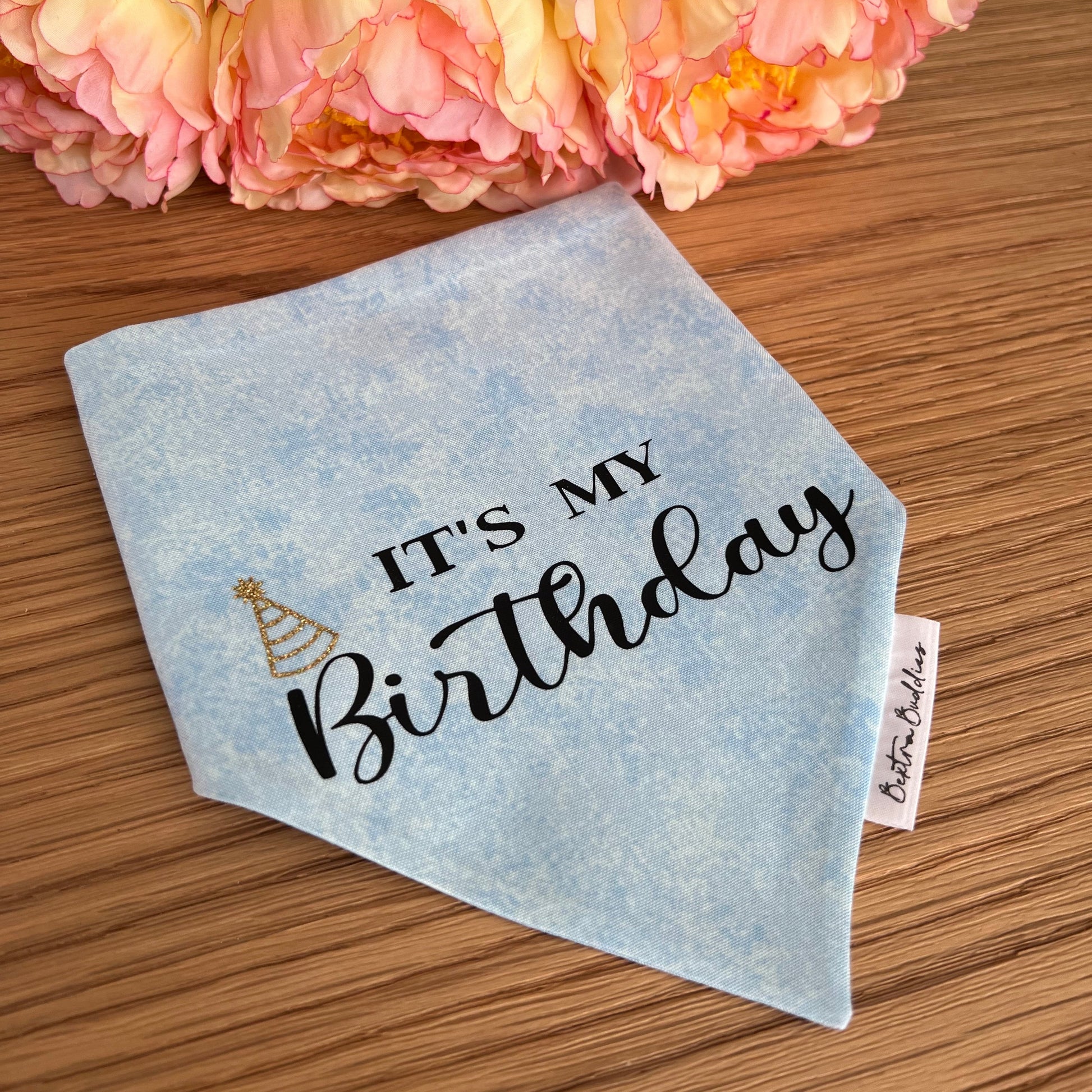 Celebrate your furry friend's special day with our It's My Birthday Bandana. This dog bandana is the perfect way to make them stand out on their birthday. Made with high-quality materials, and finished with an adorable gold glitter party hat