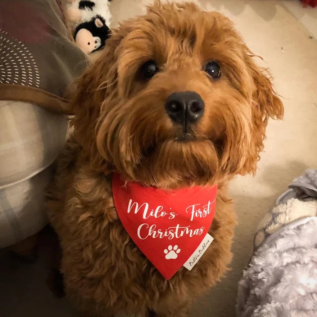 Over the collar bandanas can be worn by slipping your dog's collar through the opening between the back and front of the bandana, then clipping the collar around your pup's neck. These require a collar and cannot be tied around your dog's neck.