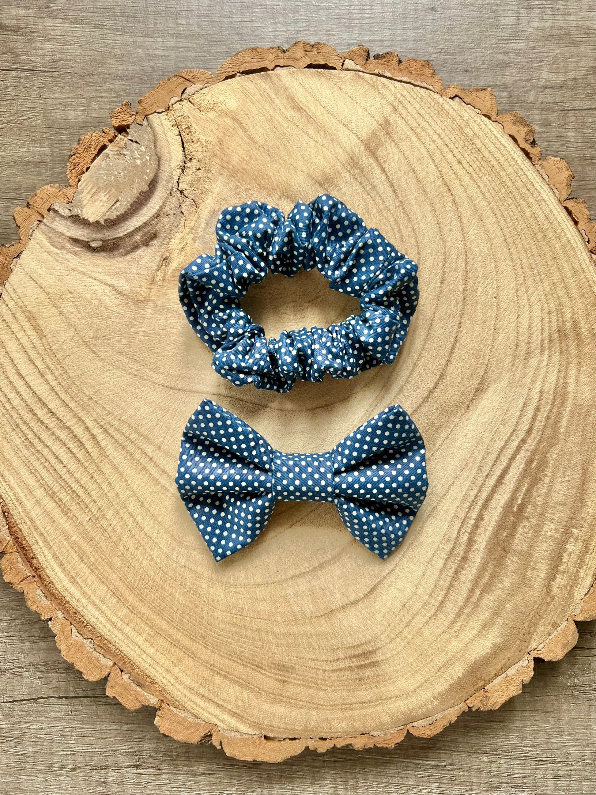 Adorable handmade bow with elastics to slip onto your dog's collar or harness.
