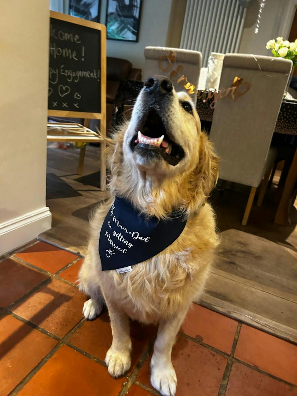 Gorgeous navy wedding bandana perfect for your big day or engagement announcement. Available in over-the-collar or snap fastening style.
