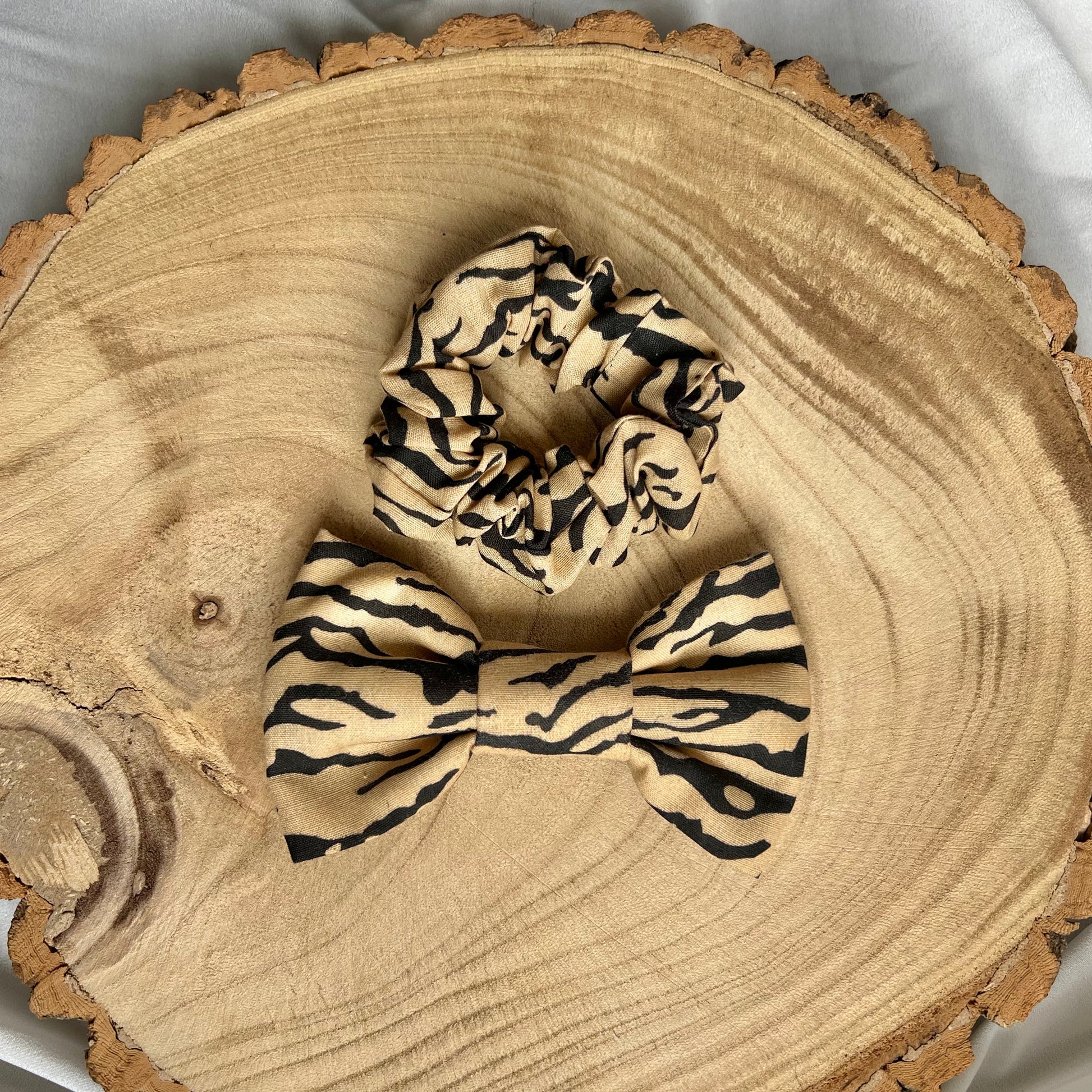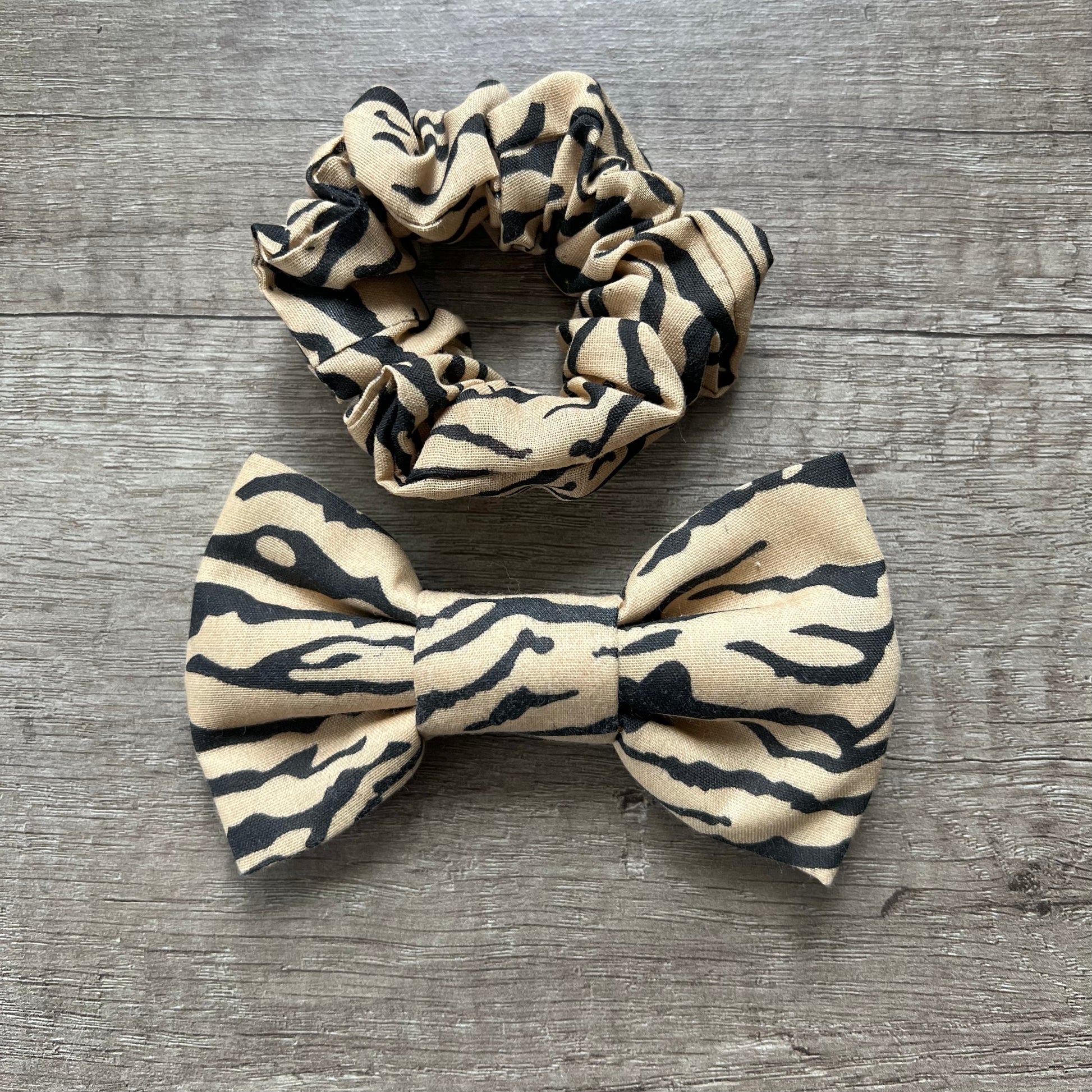 Adorable handmade bow with elastics to slip onto your dog's collar or harness.