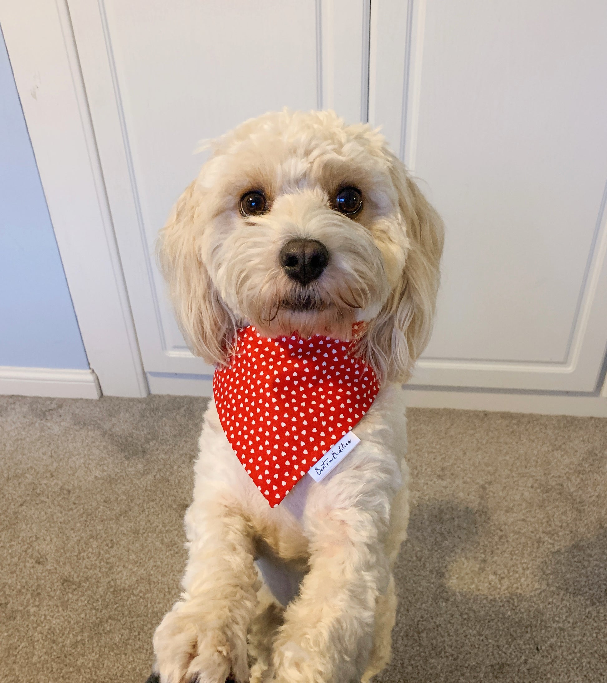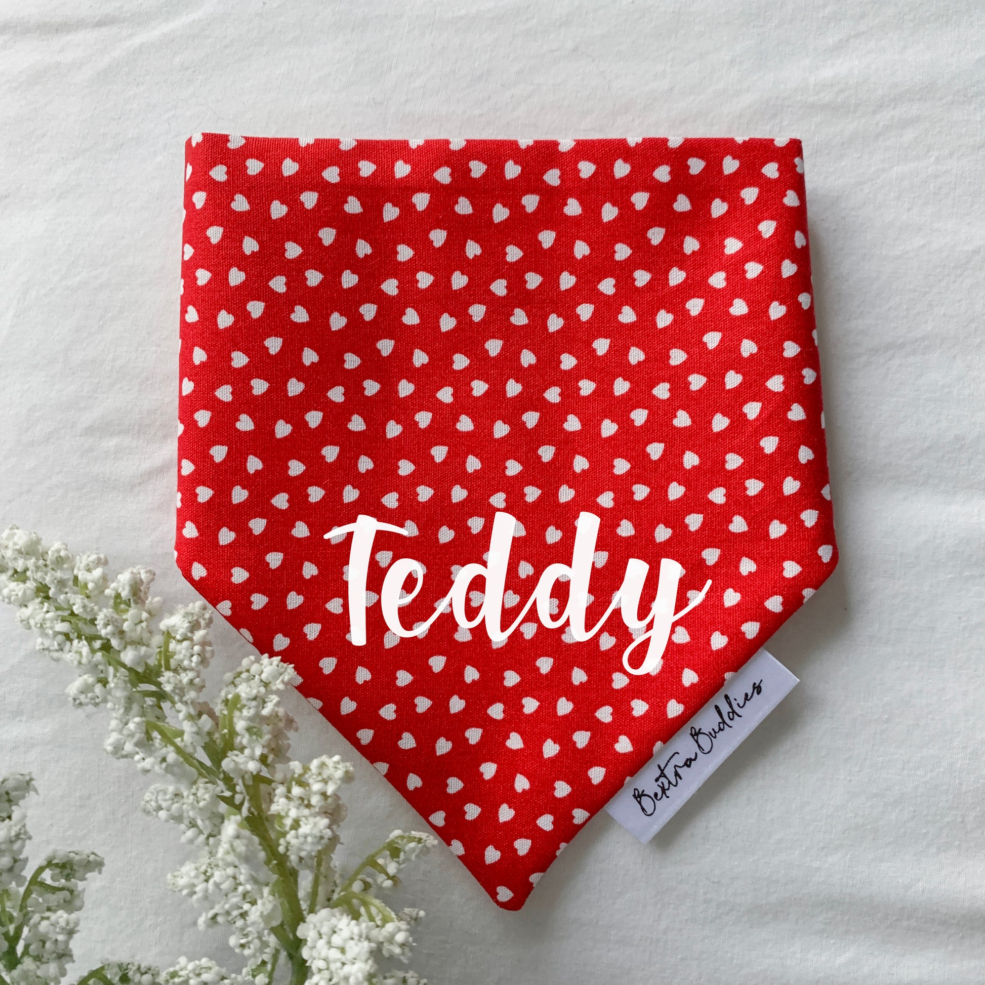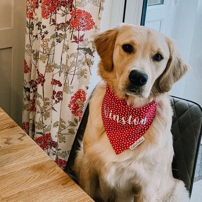 Adorable red bandana with tiny white hearts