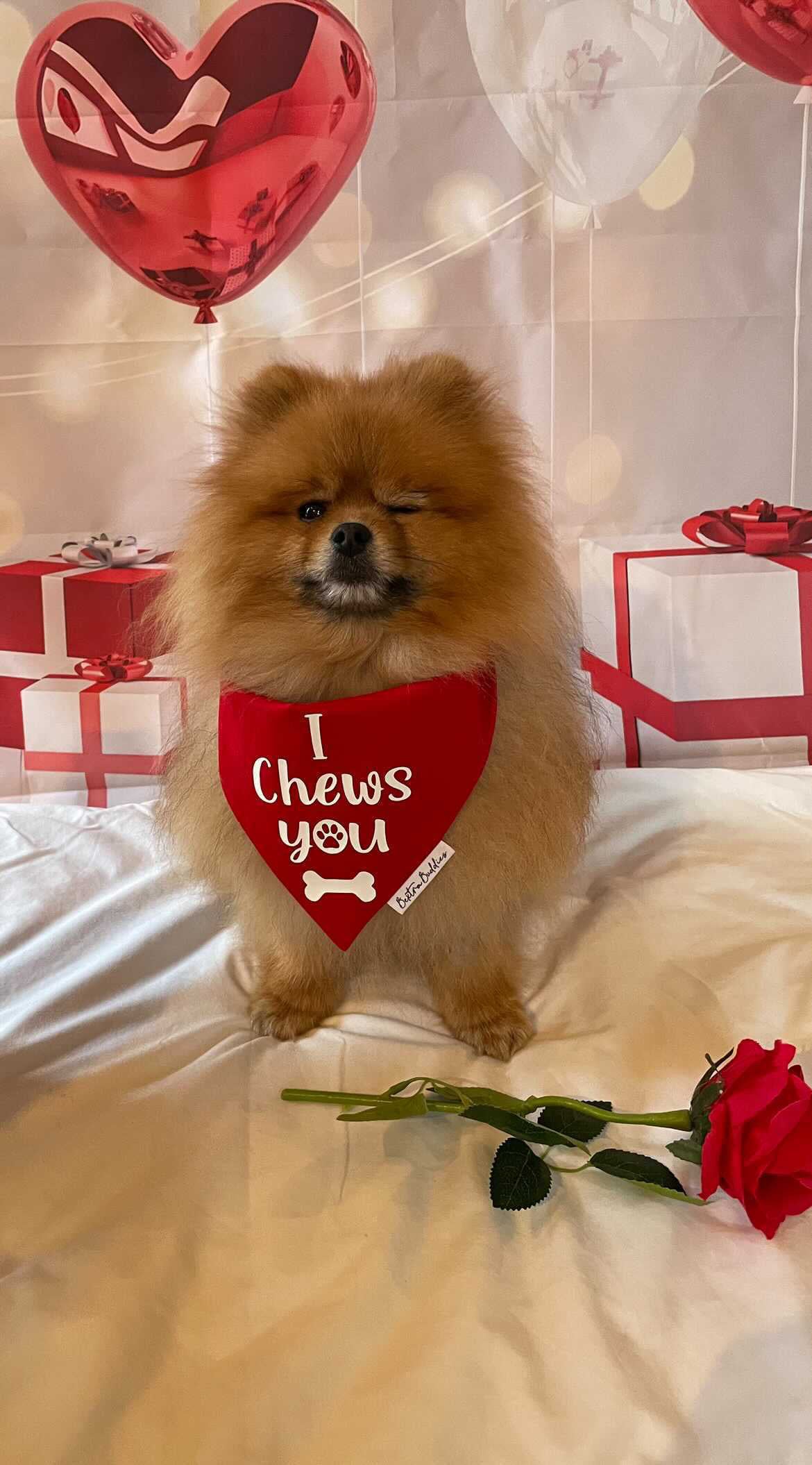 Celebrate the love for your furry friend with our "I Chews You" Valentines dog bandana. Made from soft and durable material, this bandana is perfect for showing off your pet's festive spirit on special occasions.